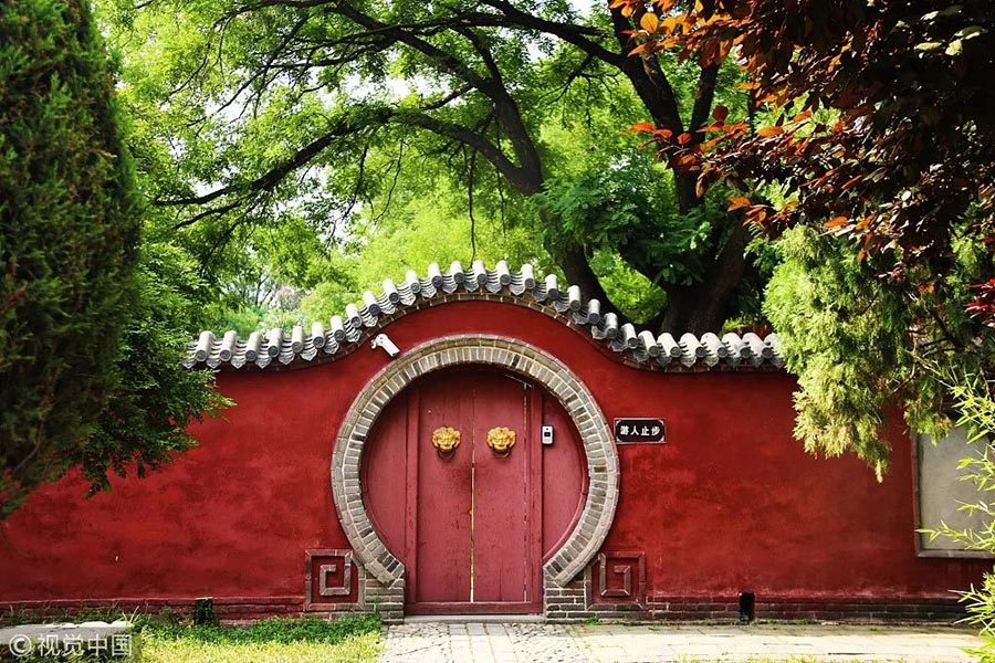 逛完孔廟后在灑滿陽光的墻根下坐著