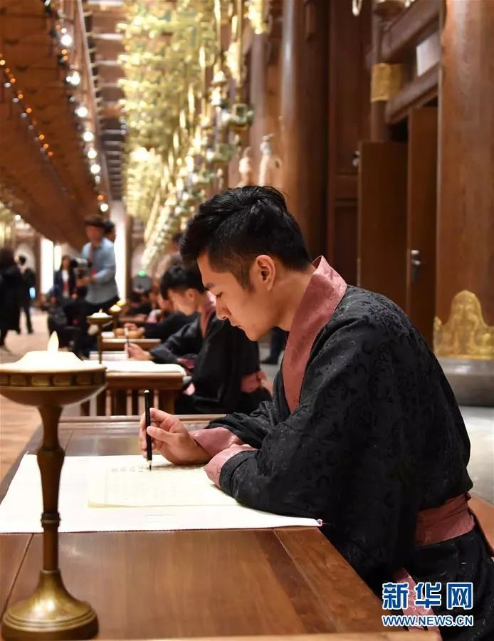 在2018中國(曲阜)國際孔子文化節上,傳統文化愛好者在展示傳統文化技藝。 新華社記者 徐速繪 攝
