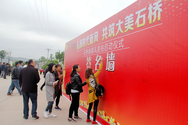 四川瀘縣石橋鎮舉辦移風易俗活動,群眾在簽名墻上簽名承諾。(四川省瀘縣紀委監委 吳威 供圖)