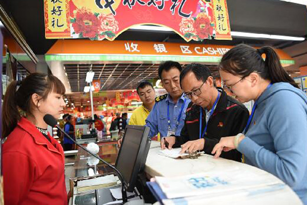 節日期間,云南省石林縣紀委監委深入超市、賓館、酒店,檢查是否存在公款吃喝、公款購買月餅、公款旅游等問題(云南省石林縣紀委監委 黃俊 供圖)