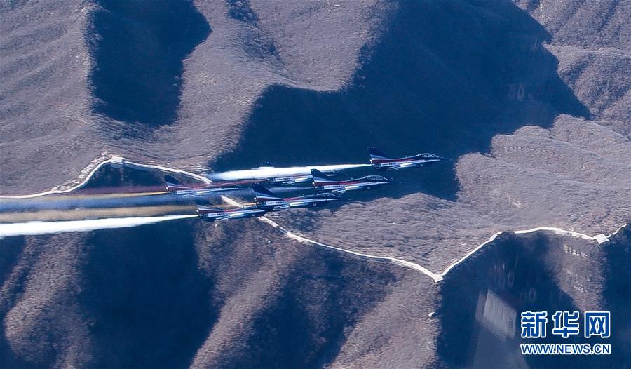 12月6日,中國空軍八一飛行表演隊6架殲-10飛越長城。? 新華社發(陶佳莉 攝)