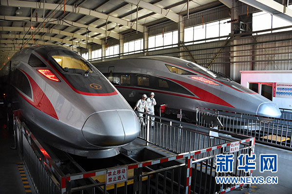 我國首列時速200至250公里高速動車組、首列時速300公里高速動車組、首列設計時速380公里高速動車組,以及首列“復興號”動車組……這里駛出的CRH380A,創下了時速486.1公里的世界高鐵運營試驗第一速。