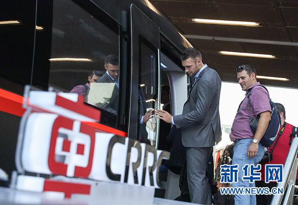 在德國首都柏林,人們參觀中國中車的新一代碳纖維地鐵列車(2018年9月18日攝)。新華社記者 單宇琦 攝