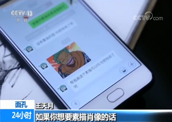 王天月:一般給我打錢,我都會說如果你想要素描肖像的話,把你的照片發給我就行,這個發的是動畫片。