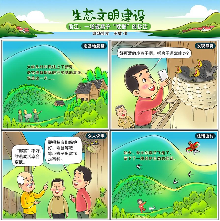 小燕子順利長大了,也能飛了,竹源鄉干部再三確認燕子已經離開燕窩后,才拆除老宅。大嶺頭村的最后一幢危房,隨著綿長的梅雨季一起“結束”。