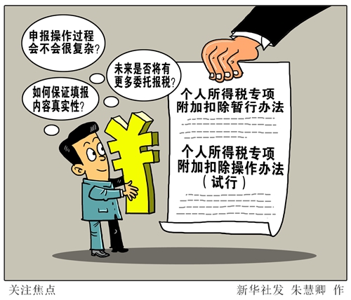 日前,《個人所得稅專項附加扣除暫行辦法》和《個人所得稅專項附加扣除操作辦法(試行)》正式公布。面對這項即將實施的惠民政策,很多人關心:申報操作過程是否會很復雜?如何保證信息真實性?委托報稅可否實現?“新華視點”記者采訪了權威人士、專家以及多地基層稅務人員,回應民生關切。