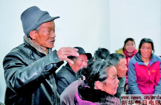 “我也要說兩句?!甭犃苏勗拑热?這位叫申永貴的老人站了起來?!斑@一二年,家家院壩修得好,生活變化大,都是習總書記關心咱們老百姓。我已經79歲嘍,生活好了,就想著多活一年半載,能看著我們村變得更好?!崩先说脑捯齺硪黄坡?。