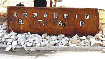 在靠近尤倫斯藝術中心的一棵樹下,一個鐵鑄的牌子上寫著“北京東京藝術工程B.T.A.P.”,這是798第一塊地域意義上的牌子。2002年北京東京藝術工程開幕的時候,由黃銳等藝術家籌資所立。
