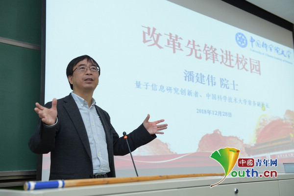 12月28日,潘建偉院士在成立于1978年、與改革開放同頻共振的中國科學院大學做了一場精彩的報告,第一教學樓101報告廳人山人海,過道和門口都擠滿了學生,另外開辟的直播教室也座無虛席。