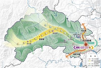 門頭溝空間結構為“一城、兩帶、三點、多脈”。