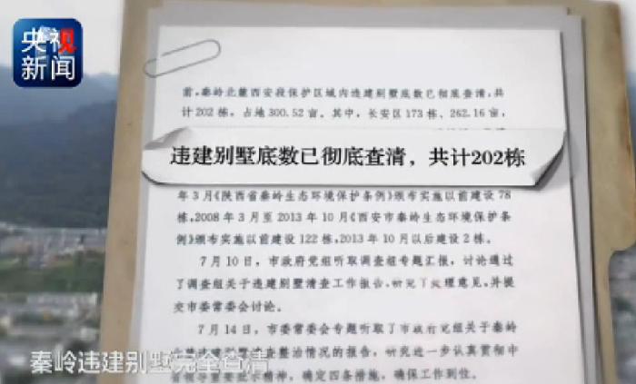2018年7月下旬,中央專門派出專項整治工作組入駐陜西,與當地省、市、區三級政府聯合開展針對秦嶺違建別墅的整治行動。