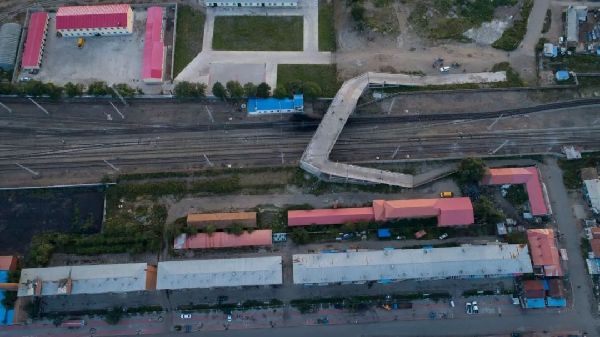 平改立工程K11公里道口航拍圖,可以看到,為了前往殯儀館,通過道口時唯一的選擇。(8月28日 航拍圖)達日罕攝