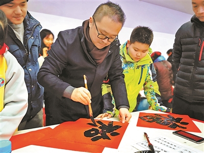 劉建豐說,今年平谷廟會期間,書法家們已排好值班表,每天都將駐守在廟會的書法大棚下,為大家繼續免費現場寫“?!?、寫春聯。(記者 林艷)