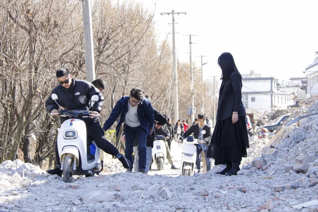 2019-01-03,云南省大理白族自治州。洱海環線由于拆遷道路并不平坦。是熱心游客們的互相幫助,才將一輛輛電動車送向平坦的路段。作者:Sherry