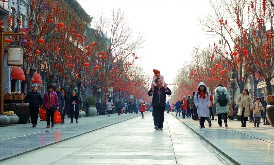 2019-02-02,北京市。迎新春,大柵欄掛起紅燈籠,喜慶的節日氣氛吸引了八方來客。作者:大龍