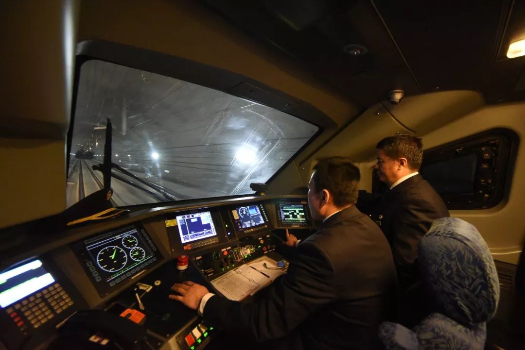 2019-01-29,內蒙古呼和浩特至烏蘭察布站D6966次列車駕駛室。春運第9天,高鐵司機全神貫注地駕駛動車組行駛在隧道中。作者:玩家