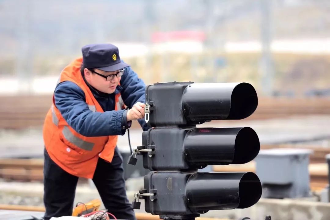 2019-01-31,吉林省白山市江源站。鐵路工作人員在發車前核對時間的瞬間。作者:了凡大叔