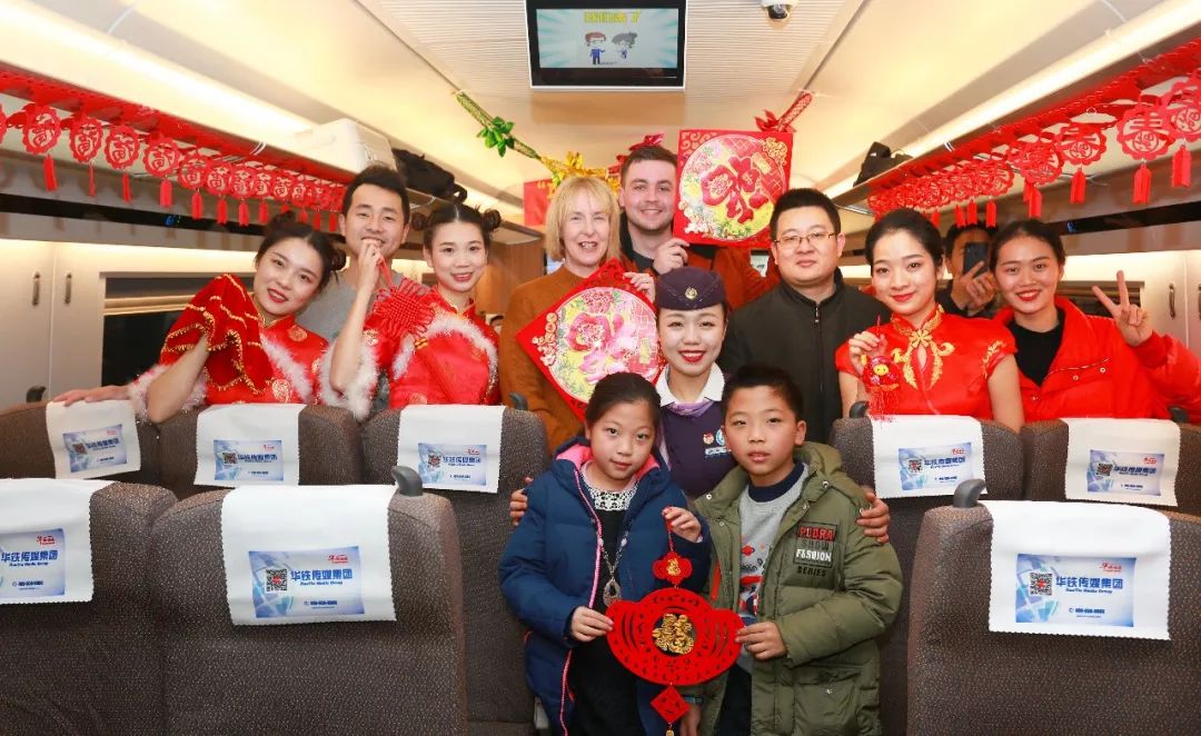 2019-02-03,杭州東站開往黃山北的G7301次列車。高鐵二隊“巧紅乘務組”乘務人員扮演成“佩奇”和“巧紅”玩偶在車門口迎接旅客,并和旅客合影。開車后,車廂內上演了熱鬧的聯歡會,工作人員還向旅客贈送小禮品,表達新春的祝福。作者:影之友