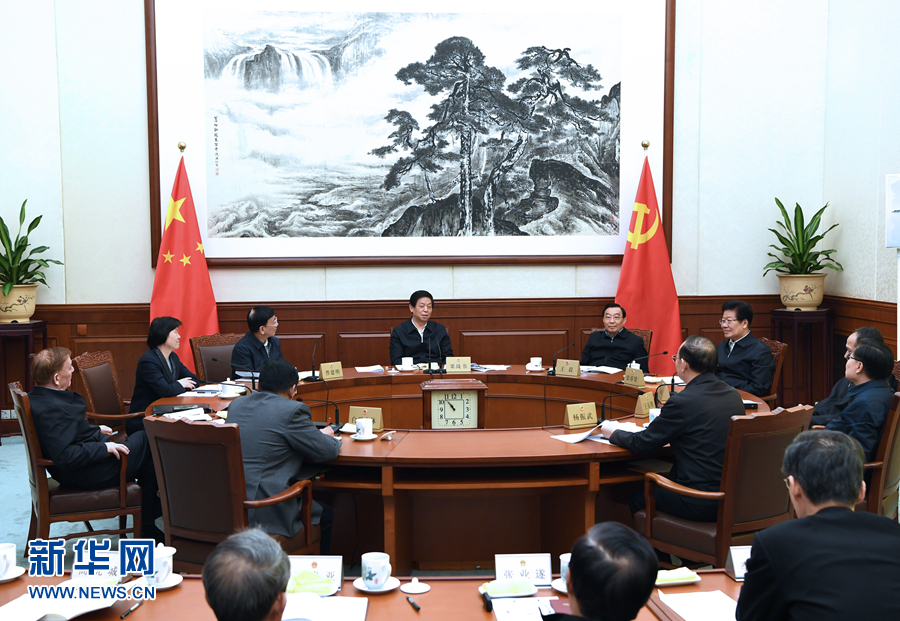 王晨、曹建明、張春賢、沈躍躍、吉炳軒、艾力更·依明巴海、王東明、白瑪赤林、楊振武出席會議并發言。