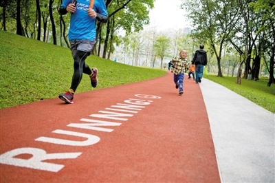 天河公園拆圍透綠打造出一條1430米的緩跑徑。羊城晚報記者 梁喻 攝