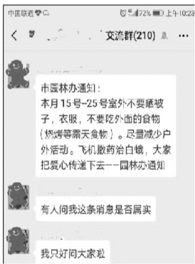 近日,網絡上再次出現所謂“飛機撒藥治白蛾的通知”,內容為:“市園林辦通知:本月15號至25號室外不要曬被子,衣服,不要吃外面的食物(燒烤等露天食物)。盡量減少郊外,戶外活動。飛機撒藥治白蛾,大家把愛心傳遞下去?!笔袌@林綠化部門昨天回應稱:此消息實屬謠言。飛機撒藥的目的是防治林業病蟲害,這項工作將于4月初開始。使用的藥劑對人畜無毒無害,同時撒藥范圍主要集中在五環以外非人口密集區的生態公益林、防護林等林地,遠離居民生活區,因此不會對市民生活造成影響。