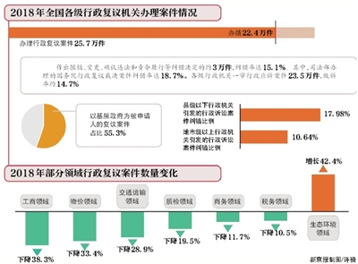 各級行政機關去年辦理行政復議案25.7萬件;5年來以基層政府為被申請人的案件年均增長10.7%