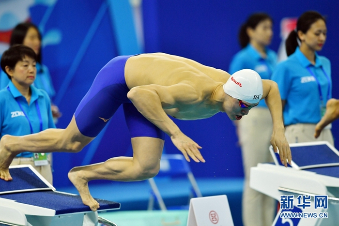 3月27日,浙江隊選手孫楊在比賽中出發。當日,在青島舉行的2019年全國游泳冠軍賽暨世錦賽選拔賽男子800米自由泳決賽中,浙江隊選手孫楊以7分48秒03的成績獲得冠軍。 新華社記者朱崢攝