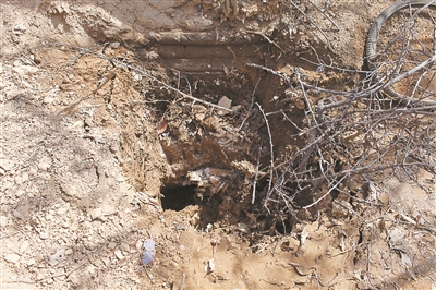 2014年夏季的一個雨夜過后,當地村民發現寶頂周圍一片狼藉,地里的蔬菜被踩得東倒西歪,雜亂的腳印徑直通向寶頂,寶頂前的泥土一夜之間變得新鮮松軟,像是被人松動過。村民判斷,必定是有人在夜幕的掩護下,悄悄潛入小院對寶頂進行盜挖,而后回填是為掩人耳目。這伙人挖了多深、挖到了什么則不得而知。此后,村民在澆地時,盜挖處出現沉降,并隱約露出一個盜洞口。