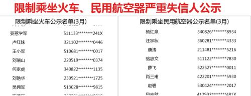 限制乘坐火車、民用航空器嚴重失信人公示。