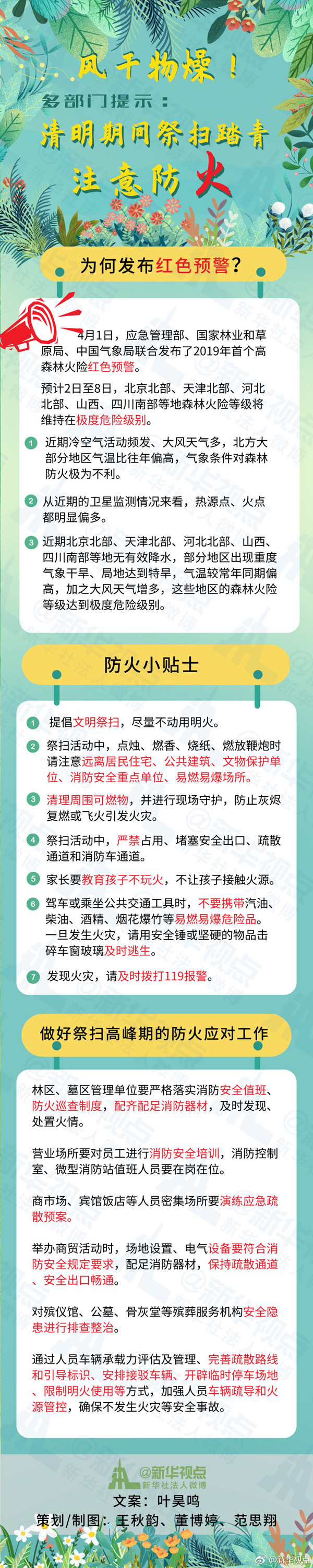 新華社北京4月3日電?題:風干物燥,多部門提示注意防火