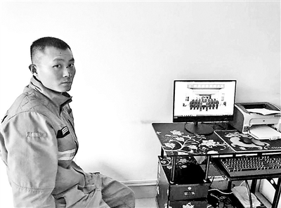 臉上傷痕清晰可見的胡顯祿,看著電腦中戰友的照片,仍不敢相信山頂的一別竟是永別