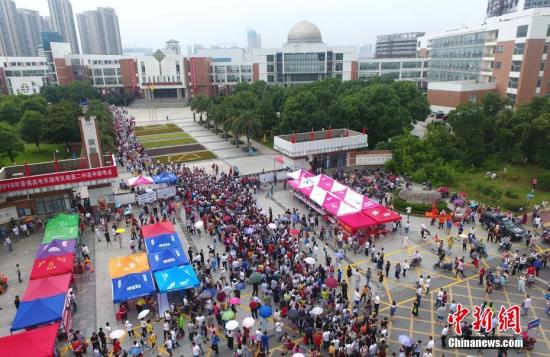 資料圖:高考首場考試結束后,考生有序走出考場,形成的隊伍猶如“長龍”。中新社記者 劉占昆 攝