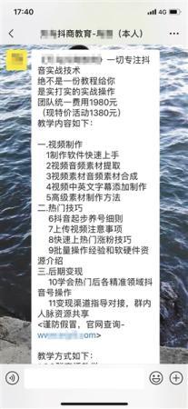“最開始對方說得天花亂墜,每天晚上9點統一開課,由資深抖音專家一對一教導?!焙舱f,“課程除了教導視頻制作外,更多會就養號、漲粉等技巧進行培訓?!钡珜W習了幾天后,胡翰覺得自己似乎被騙了?!皩<摇泵刻靸H是在微信群發布一些短視頻制作課程,讓學員跟著操作。