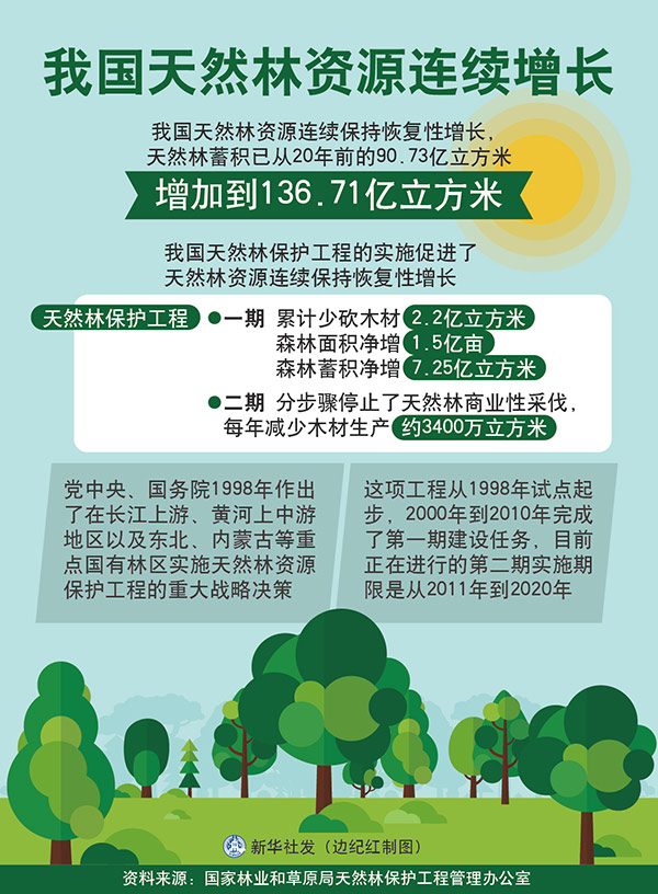 圖表:我國天然林資源連續增長 新華社發 邊紀紅 制圖