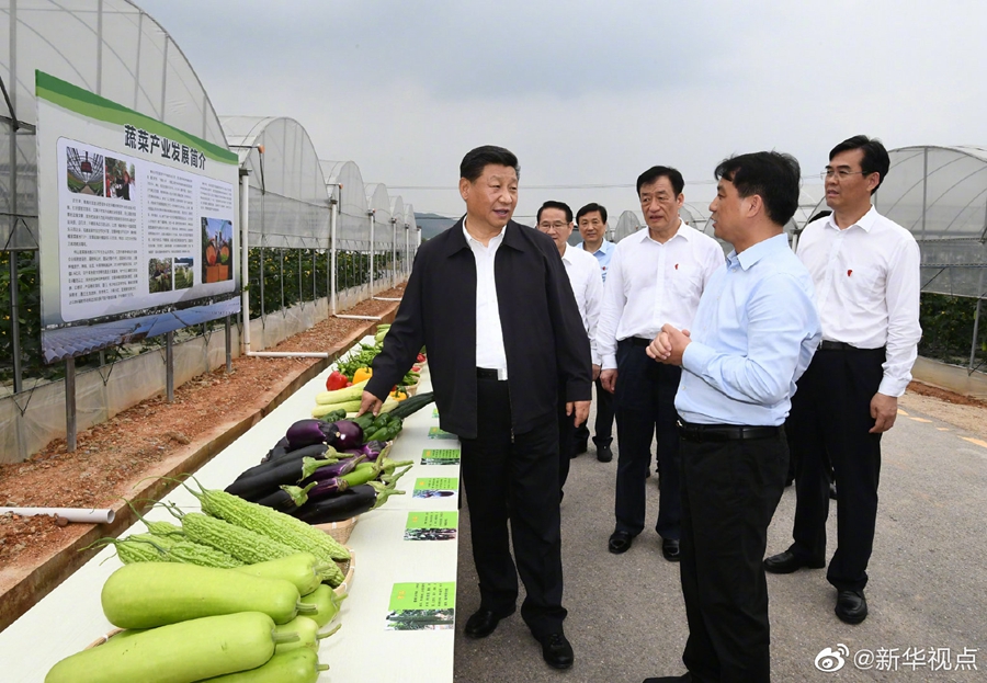 20日下午,習近平總書記來到江西省于都縣梓山富硒蔬菜產業園考察調研。產業園以“龍頭企業+合作社+農戶和貧困戶”發展模式,帶動了當地村民脫貧致富??吹娇倳泚砹?,正在大棚里勞作的鄉親們激動地說:“感謝黨的好政策,讓我們過上了幸福生活!”習近平對鄉親們說:“共產黨就是為人民群眾謀幸福的,黨中央想的就是千方百計讓老百姓過上好日子。芝麻開花節節高,今后日子會更好!”(文字:張曉松 攝影:謝環馳、鞠鵬)