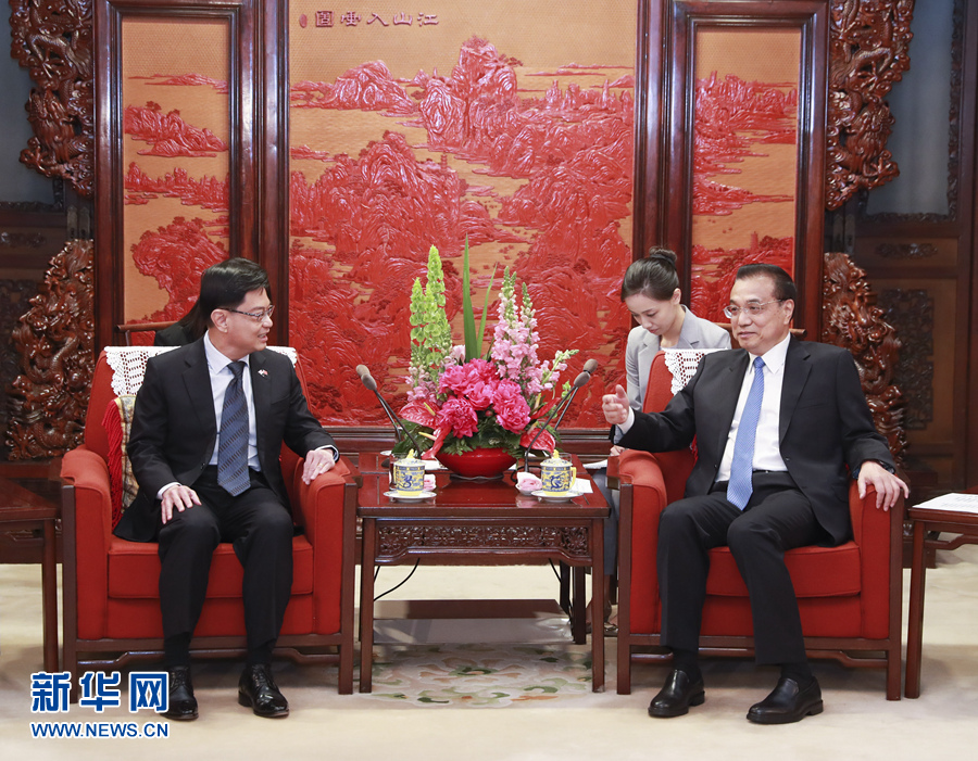 李克強表示,當前中新關系發展勢頭良好。中方愿同新方繼續密切高層交往,將“一帶一路”倡議同新方發展戰略更好對接,發揮好兩國副總理級雙邊合作機制作用,推進“陸海新通道”和第三方市場合作,深化貿易投資、金融、智慧城市以及中國地方省市同新加坡的合作,推動兩國關系與合作再上新臺階。