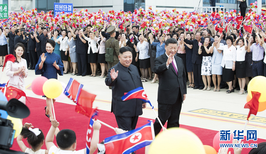 當地時間下午3時許,在朝鮮民眾夾道歡送中,習近平和彭麗媛抵達機場,金正恩夫婦在下車處熱情迎接。朝鮮各界群眾在機場熱烈歡送,習近平向他們揮手致意。軍樂隊奏中朝兩國國歌,習近平在金正恩陪同下檢閱了朝鮮人民軍三軍儀仗隊。朝鮮少年兒童向習近平夫婦獻花。習近平同朝方前來送行的高級官員一一握手告別。在專機舷梯旁,習近平同金正恩緊緊握手話別。習近平夫婦邁上舷梯,在機艙門口轉身,向金正恩夫婦揮手告別。