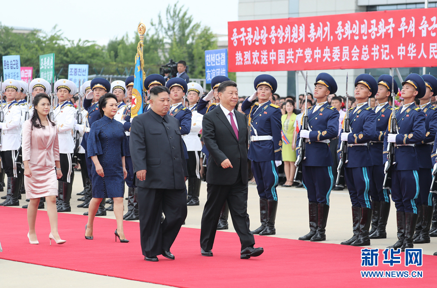 6月21日,中共中央總書記、國家主席習近平結束對朝鮮的國事訪問離開平壤回國。離開前,習近平和夫人彭麗媛出席朝鮮勞動黨委員長、國務委員會委員長金正恩和夫人李雪主在機場舉行的歡送儀式。新華社記者 黃敬文 攝
