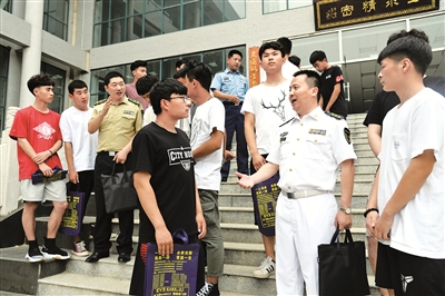 濟寧軍分區和軍隊院校招生工作人員深入到校園,面對面向剛參加完高考的學生介紹軍隊院校招生報考流程。張印東攝