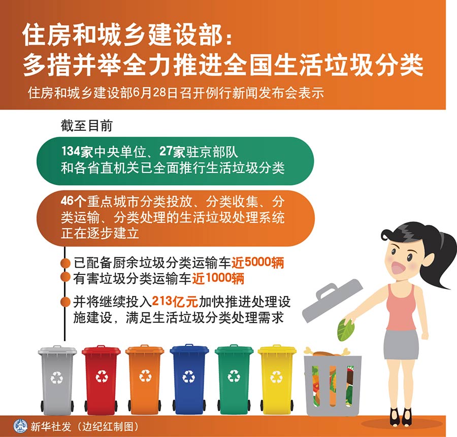 新華社北京6月28日電(記者王優玲)住房和城鄉建設部28日召開例行新聞發布會表示,下一步將繼續會同有關部門多措并舉全力推進生活垃圾分類工作。