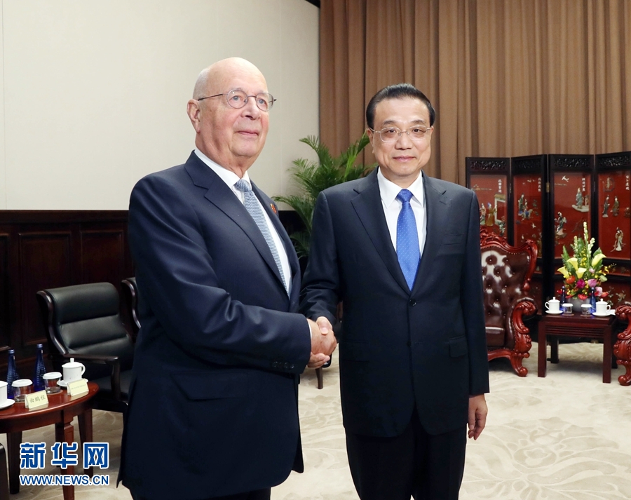 7月1日,國務院總理李克強在大連會見世界經濟論壇主席施瓦布。 新華社記者 劉衛兵 攝