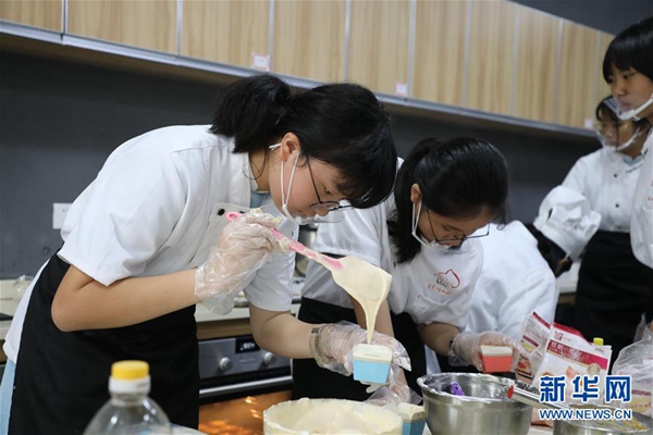 廣州市番禺區實驗中學的學生在上蛋糕烘焙課(6月3日攝)。新華社記者 李嘉樂 攝