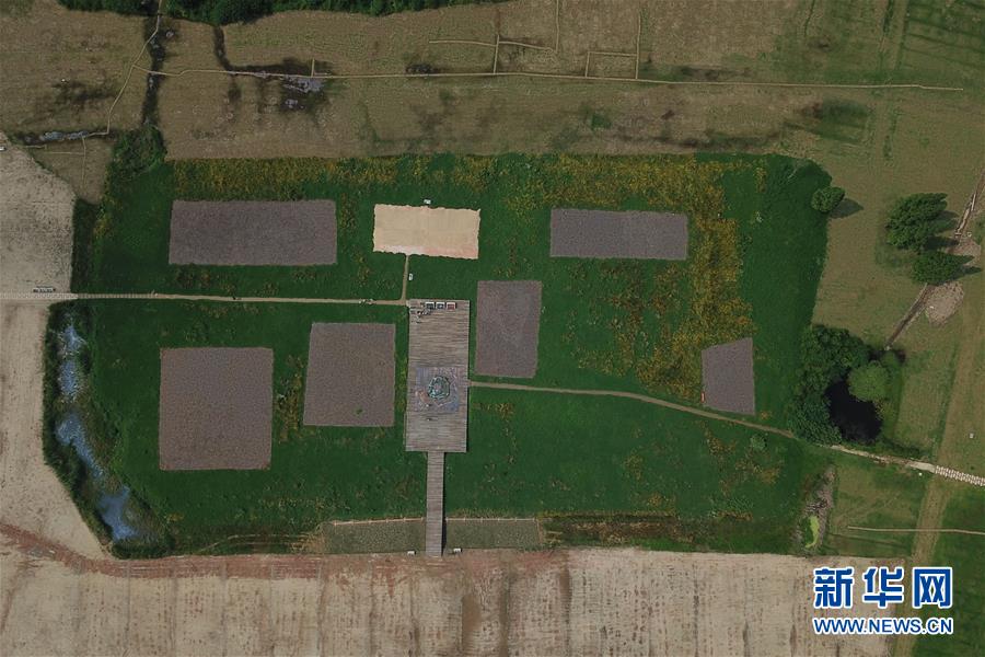 6月23日無人機拍攝的位于浙江省杭州市的良渚國家考古遺址公園的宮殿區。新華社記者 黃宗治 攝