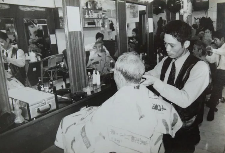 1997年,吳元渺在自己的理發店為老人免費理發。(資料照片)