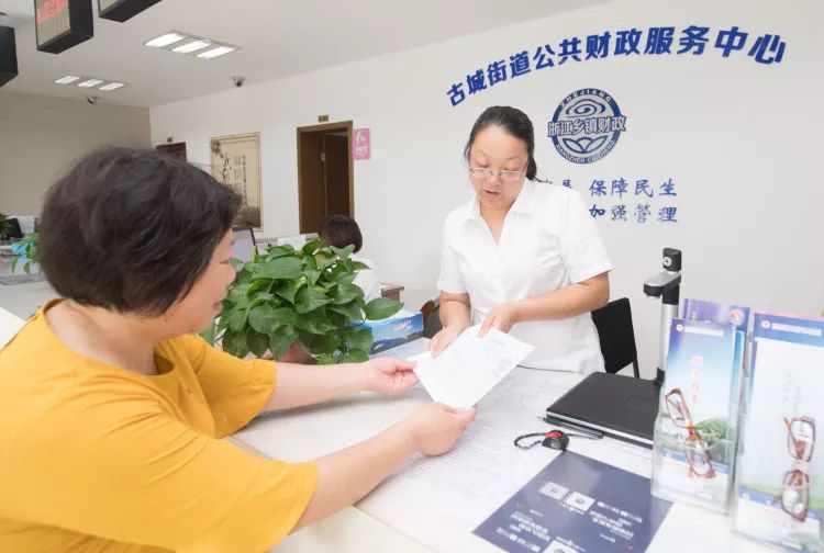 鹿城社區的書記方華芬(左)在古城街道便民服務中心為吳元渺申請一筆社會救助。