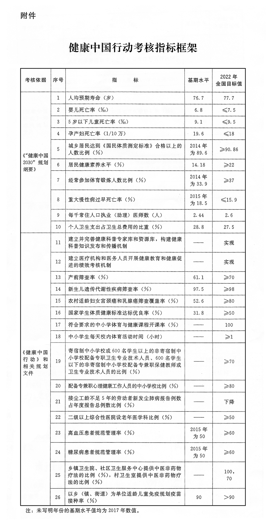 附件:健康中國行動考核指標框架