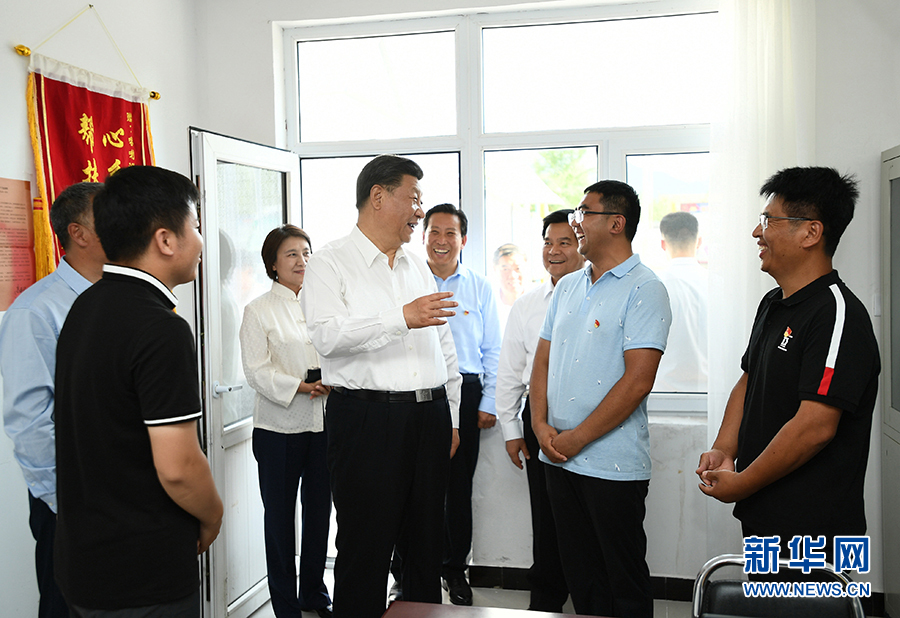 7月15日至16日,中共中央總書記、國家主席、中央軍委主席習近平在內蒙古考察并指導開展“不忘初心、牢記使命”主題教育。這是15日下午,習近平在赤峰市喀喇沁旗河南街道馬鞍山村黨群服務中心了解基層黨建、民族團結和鄉村振興情況。 新華社記者 謝環馳 攝