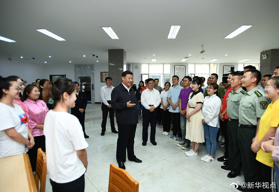 16日上午,正在內蒙古考察調研的習近平總書記來到內蒙古大學,走進圖書館同學生們親切交談。習近平指出,少年強則中國強??吹侥昵嗳私】德斆?、奮發向上,充滿正能量,心里十分高興。長江后浪推前浪,青出于藍而勝于藍,未來是屬于年青人的。在中華民族偉大復興的進程中,你們生逢其時,何其幸也。再過30年,到本世紀中葉實現第二個百年奮斗目標的時候,你們正好是國家的骨干和棟梁。大家要志存高遠、腳踏實地,學好知識,打好基礎,增長才干,將來為中華民族偉大復興貢獻自己的智慧和力量。 (文字:張曉松、朱基釵 攝影:謝環馳、李學仁)