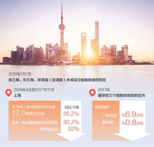交通運輸部海事局副局長楊新宅表示,2017年,在珠三角等最早的三個控制區內,船舶減排二氧化硫約6.9萬噸、顆粒物約0.8萬噸,減排量分別占控制區內船舶排放總量的14%和11%。