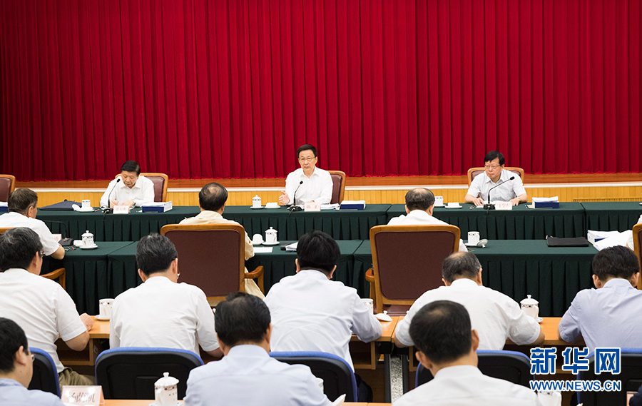 7月26日,中共中央政治局常委、國務院副總理韓正在國家發展改革委調研指導“不忘初心、牢記使命”主題教育,主持召開座談會,聽取國家發展改革委開展主題教育的情況匯報并講話。 新華社記者 黃敬文 攝